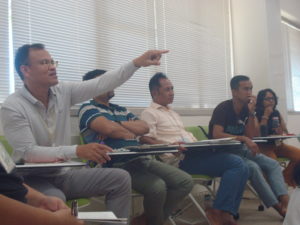 午前中の研修では、リーダーシップをテーマに、研修生のホックさんがこれまでのキャリア形成のストーリーを語りました。ホックさんは現在、ベトナムの地域開発センターにおいてプロジェクトコーディネーターとして活動しています。今回は、ホックさんの現在に至るまでのストーリーをもとに、研修生同士で『ホックさんはどのように自身のキャリアを育んだか?』そして『リーダーシップを育む環境とは?』について意見を出し合い、効果的なリーダーシップの育成についてディスカッションしました。