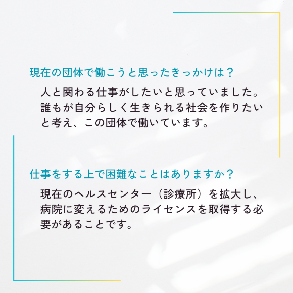 ※研修生はそれぞれの国、地域で、住民の健康や生活改善、また社会の中のマイノリティの人たちの権利を守る活動をしています。