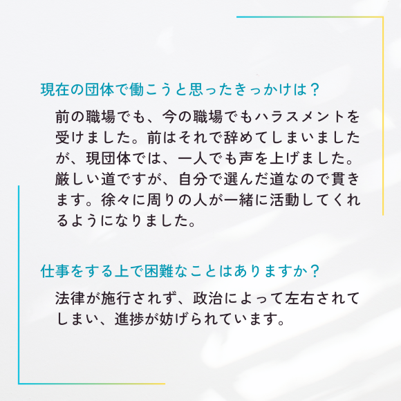 ●ナズさん・アーロンさん(フィリピン) ●ピジョンさん(バングラデシュ) ●ホックさん(ベトナム) ●ソッコウンさん・パニットさん(カンボジア)