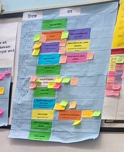 これは10日間のセッション予定表で、長方形の色紙にセッション名が書かれています。