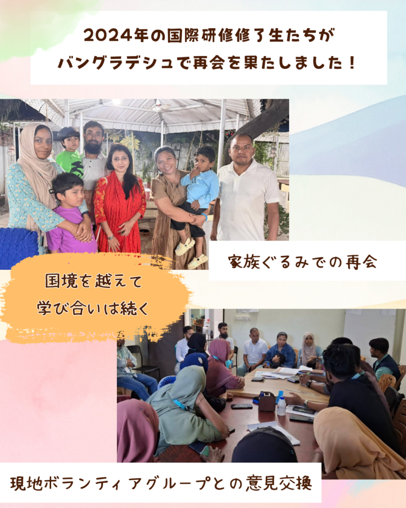 2024年の国際研修修了生3人が、バングラデシュのコックスバザールで再会を果たしました。